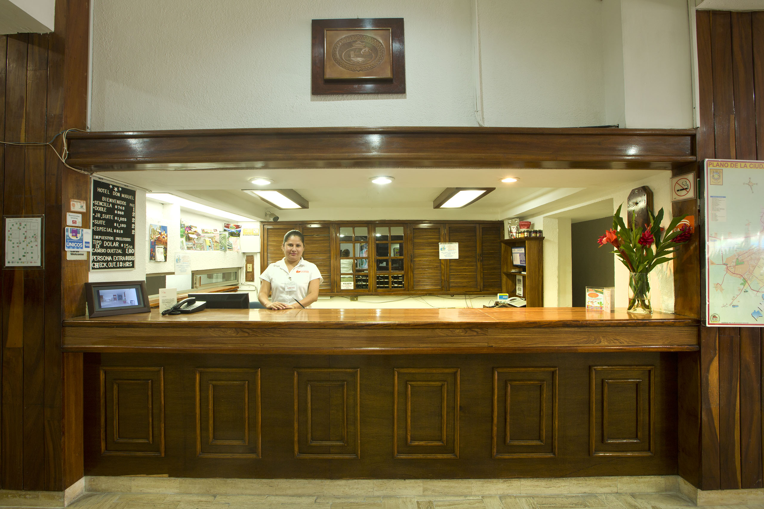 HOTEL DON MIGUEL, con categoría de tres estrellas en pleno centro de la Ciudad (a una cuadra del parque central), con estacionamiento privado y vigilancia las 24 horas del día.